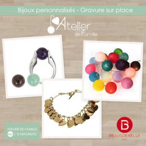 Durant le mois de mai, l’atelier de Famille occupera un stand éphémère au rez-de-chaussée du bâtiment B Magnetic, à proximité de l’entrée principale de Beaugrenelle. Soumettez vos idées à la conseillère ou lancez-vous toute seule comme une grande dans la création de votre bijou fantaisie personnalisé qui sera le plus pur reflet de votre personnalité. Et si vous optez pour le service de gravure, le message de votre bijou unique n’en sera que renforcé.